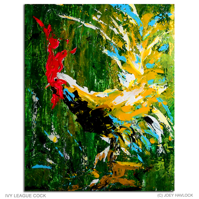 IVY LEAGUE COCK – Impressionist Roosters Series – Original Painting IVY LEAGUE COCK Original Painting Oil on MDF Board 16″ x 20″ Artist, Joey Havlock Series, Cocks