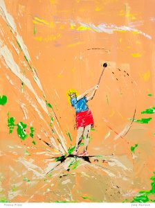 SWINGERS is an impressionist golf series that captures the spirit and excitement of an individual’s golfing experience. Vividly textured backgrounds perfectly compliment the explosive moment of impact as the golfer takes their stroke. Inspired by the focused energy of the swing, and the subsequent pose of the player, Havlock has applied his unique vision to interpret this time honored sport in a way that is vibrant and dynamic.